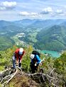 Eine Person hat sich am Grat zwischen Brennet und Kremsmauer verstiegen und kommt nicht mehr weiter.