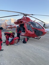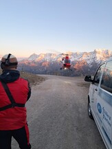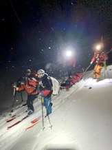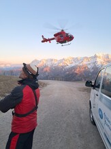 Aufrgrund einer nicht klaren Position des Opfers begannen wir in Zusammenarbeit mit den Notarzthubschrauber Martin 3 die Suche. Während unserem Aufstieg zum Gipfel konnte der Hubschrauber die Person lokalisieren und trotz starkem Wind eine Rettung durchführen. Wir fuhren mit den Toureski ab und unterstützten die Besatzung des Notartzhubschraubers bei der Versorgung des Opfes.