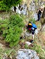Nach errichten eines Seilgeländers durch das Vorkommando, konnte die Person durch mehrmaliges Abseilen über eine steile Rinne abtransportiert werden.