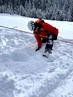 Zum Abschluss führten wir noch den Transport einer verletzten Person mit der Trage durch. Hierbei wurden verschiedene Seiltechniken und der eingerammte Ski sowie der tote Mann zur Sicherung verwendet.