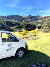 Noch vor dem Eintreffen der Bergretter bei der Unfallstelle, erreichte der Rettungshubschrauber das Opfer und konnte es mittels Tau aus dem schwierigem Gelände retten und anschließend ins Krankenhaus transportieren.