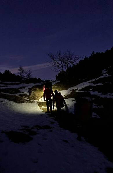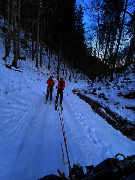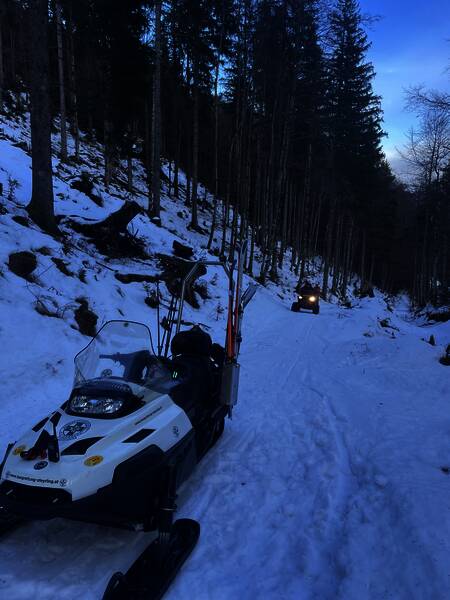 Eine Person fand in der Dunkelheit den Rückweg vom Jausenkogel nicht mehr. Nach Auffahrt mit Skidoo und Quad setzten wir unseren Aufstieg mit Ski fort. Die Person konnte vom Vorkommando gefunden und versorgt werden. Durch die restlichen Teile wurde der Abtransport mit der Trage sichergestellt und die Person sicher ins Tal gebracht.