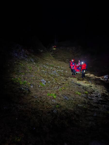 Da zum Zeitpunkt der Alarmierung kein Rettungshubschrauber verfügbar war, wurden die Vorbereitungen für einen Abtransport mittels Trage vorbereitet sowie mit dem Aufstieg zum Opfer begonnen.